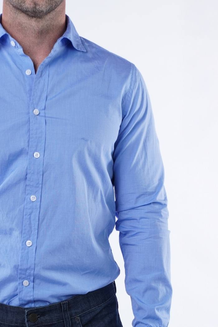 Camisa de fil a fil informal manga larga 100% algodón.