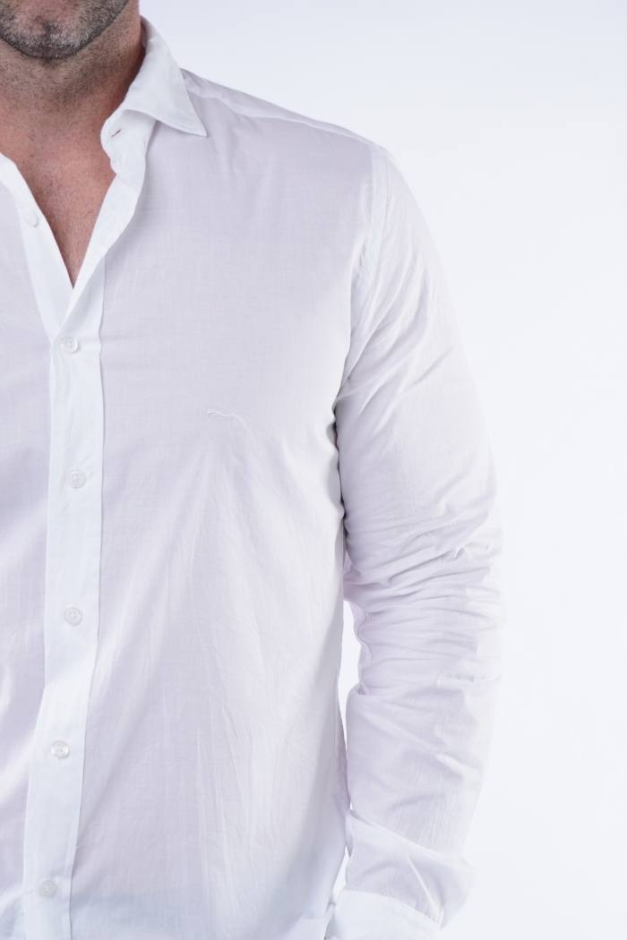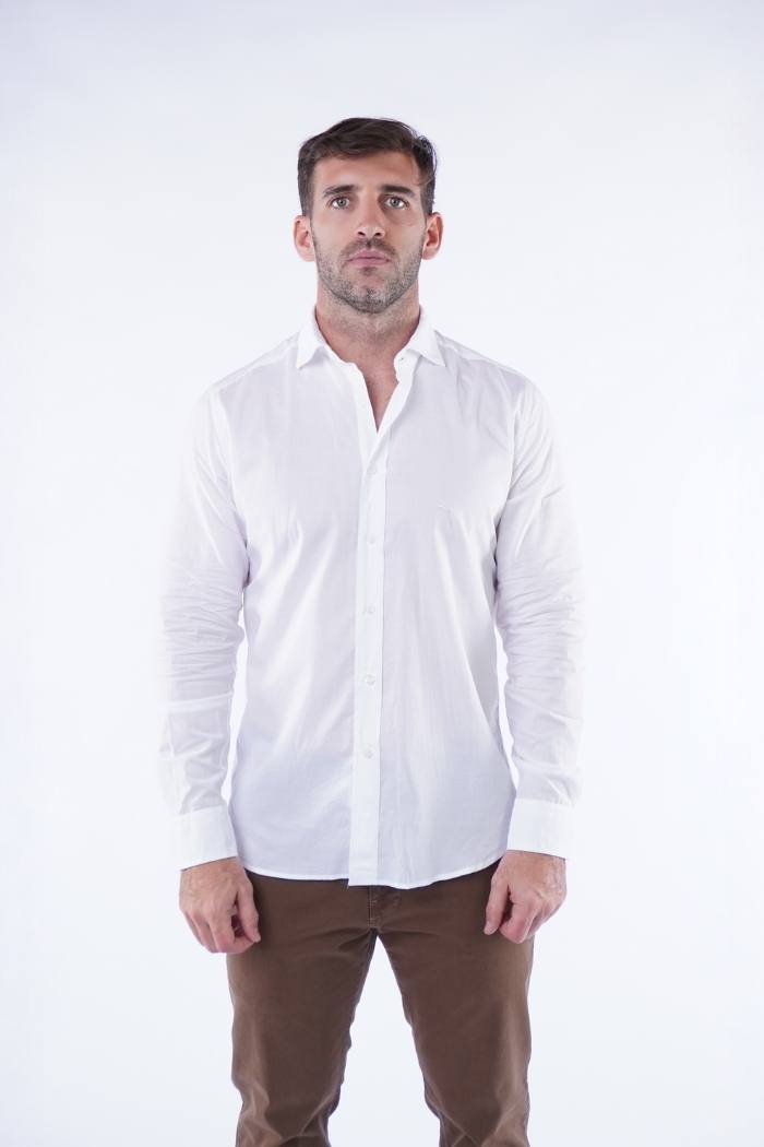 Camisa informal de voile manga larga en 100% algodón, moldería slim fit.