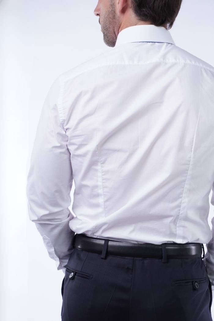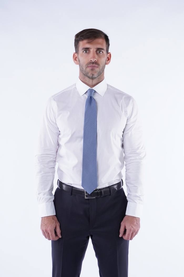 Camisa formal manga larga en poplin 100% algodón, moldería slim fit.