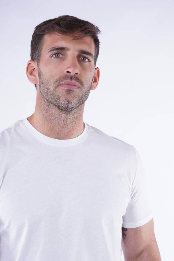Remera cuello redondo manga corta, con fit relajado, en 100% algodón pima peruano.