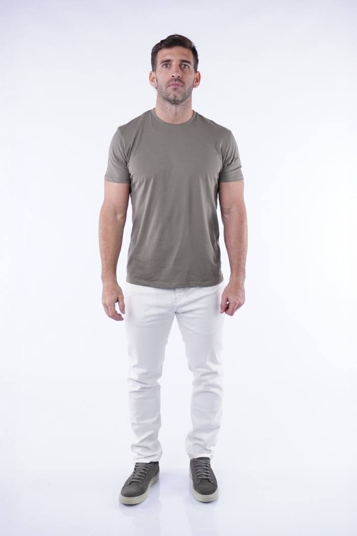 Remera cuello redondo manga corta, con fit relajado, en 100% algodón pima peruano.