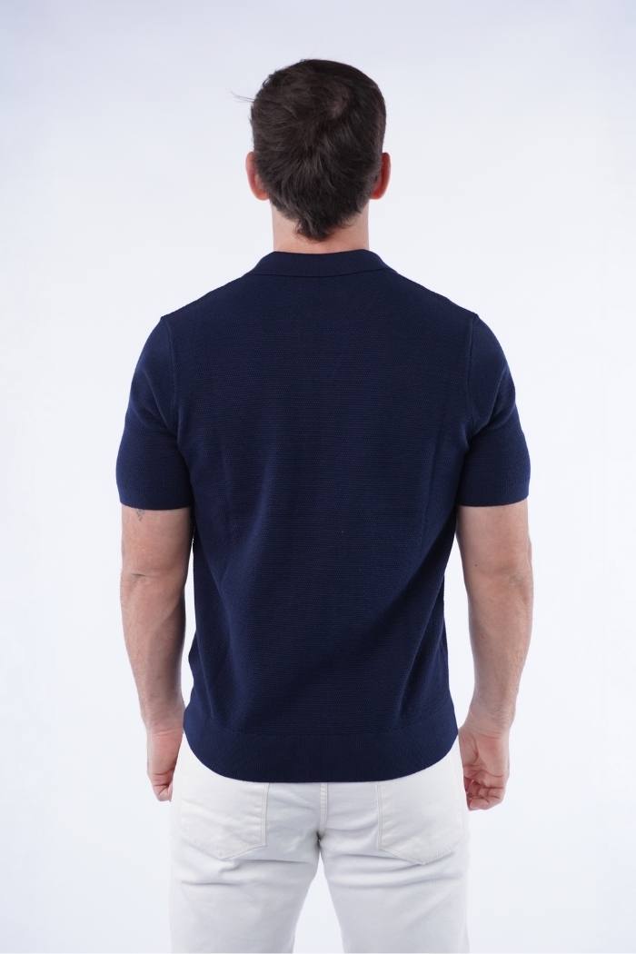 Remera tejida cuello polo con hilado ultrafino 100% algodón, relaxed fit.