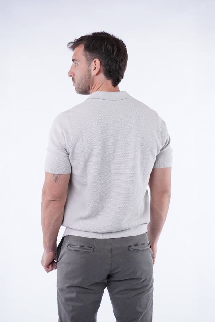 Remera tejida cuello polo con hilado ultrafino 100% algodón, relaxed fit.